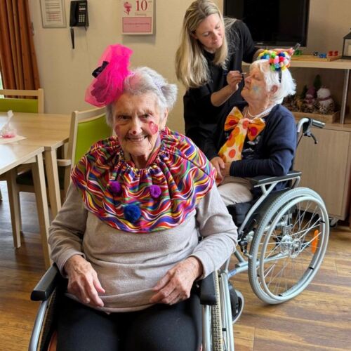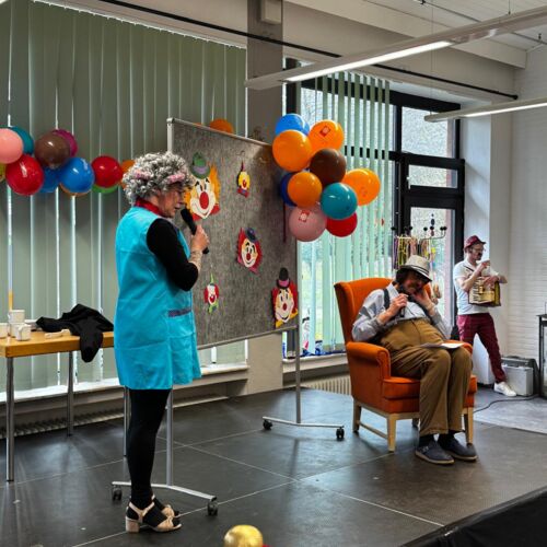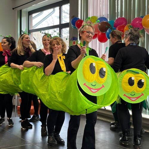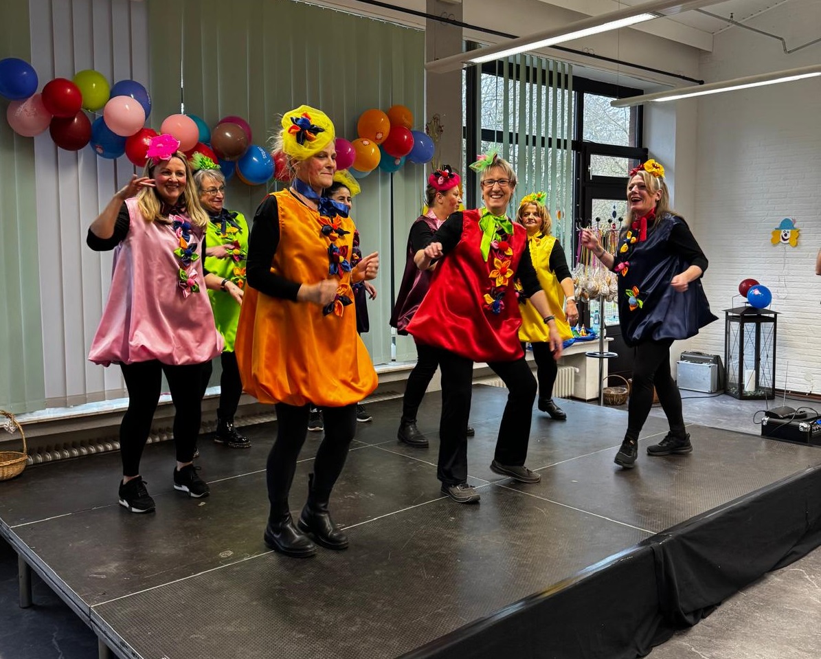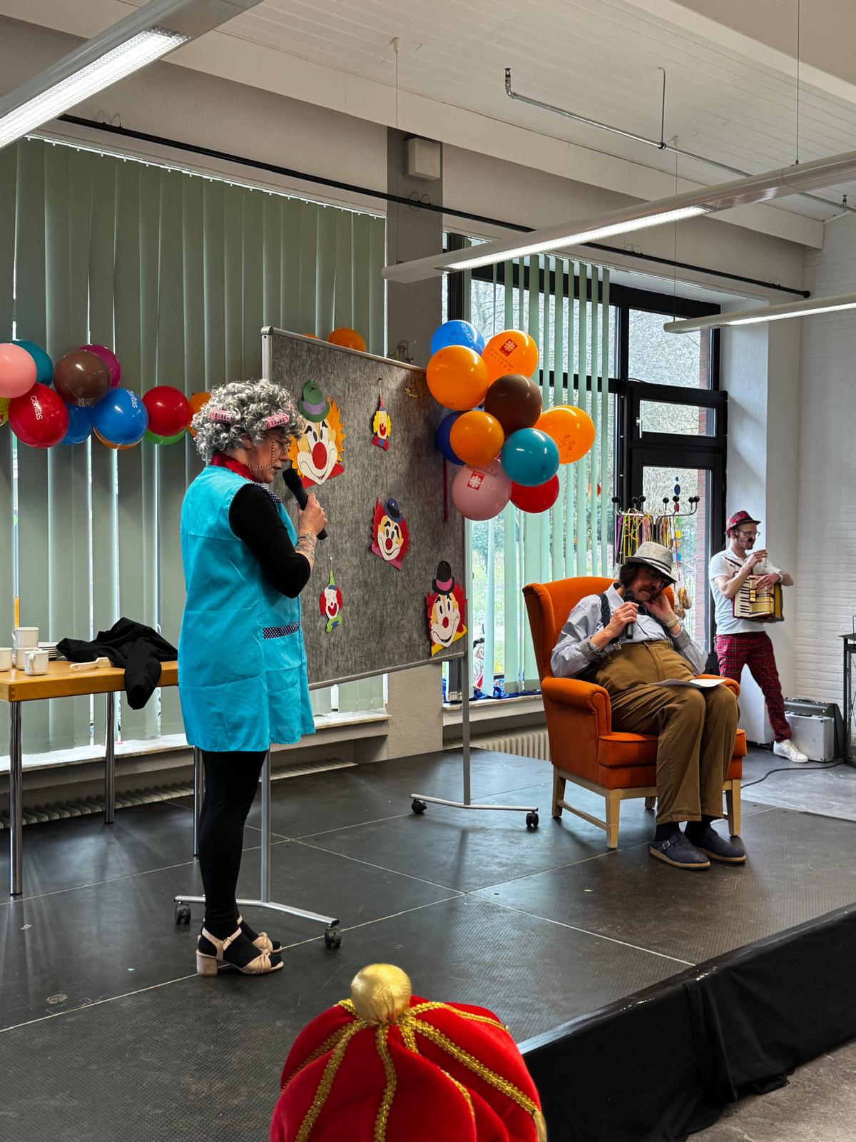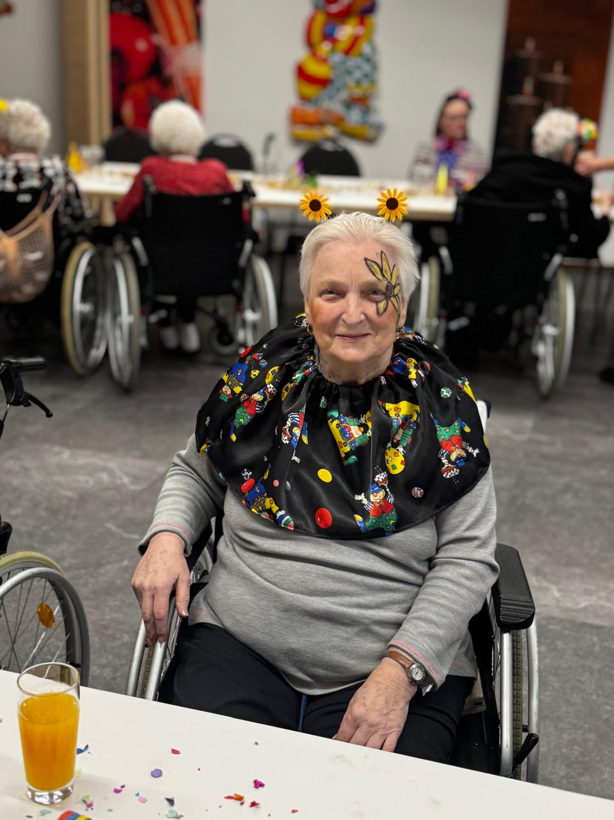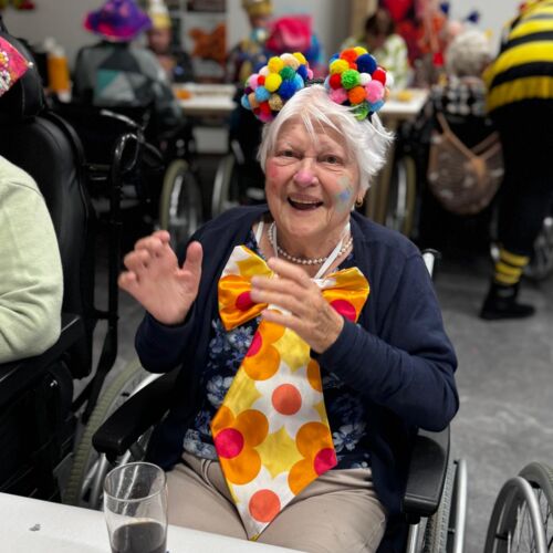Den Auftakt machte unser Sozialer Dienst in bunten, selbstgenähten Kostümen. Mit Musik und Kamelle zogen die Damen ein und sorgten direkt für beste Stimmung. Spätestens beim Mitmachtanz zum Karnevalshit „Gute Laune“ machten alle Bewohner/innen mit.