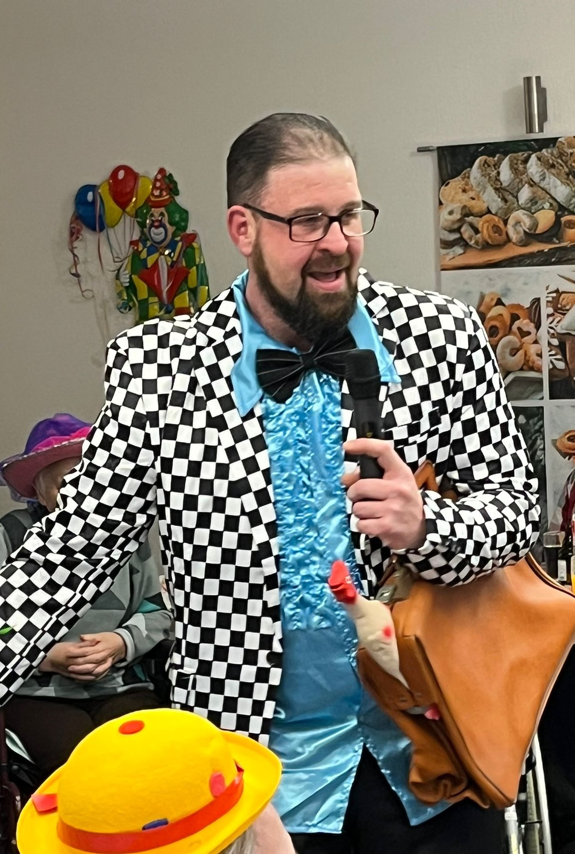 Nachdem unsere Bewohnerinnen und Bewohner liebevoll geschminkt und ein wenig verkleidet wurden, versammelten sich alle im festlich geschmückten Saal.