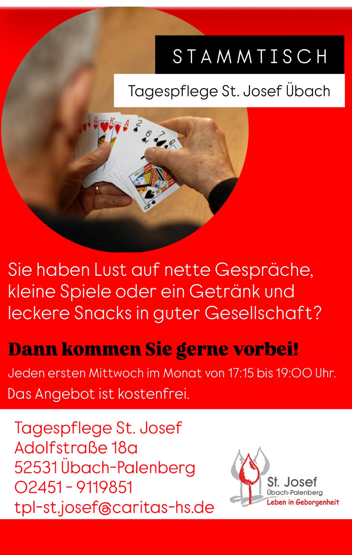 Das Tagespflegehaus St. Josef, als teilstationäre Betreuungsform für 12 Gäste, steht unter der Trägerschaft des Alten- und Pflegeheimes St. Josef gGmbH. Tagespflege bietet ihren Gästen die Möglichkeit, so lange wie möglich in ihrer vertrauten Umgebung leben zu können aber gleichzeitig tagsüber in Gesellschaft und integriert den Tag abwechslungsreich zu erleben. Pflegende Angehörige werden entlastet, da unsere Gäste tagsüber im Tagespflegehaus eine angemessene pflegerische und soziale Betreuung in Anspruch nehmen können.